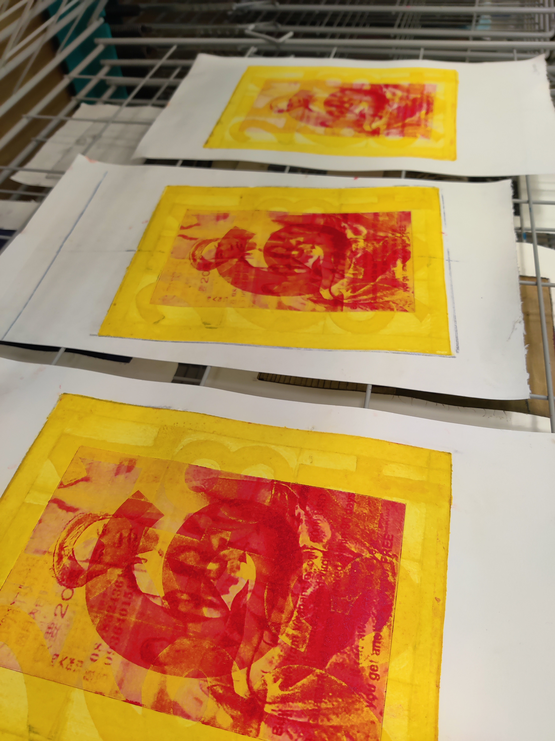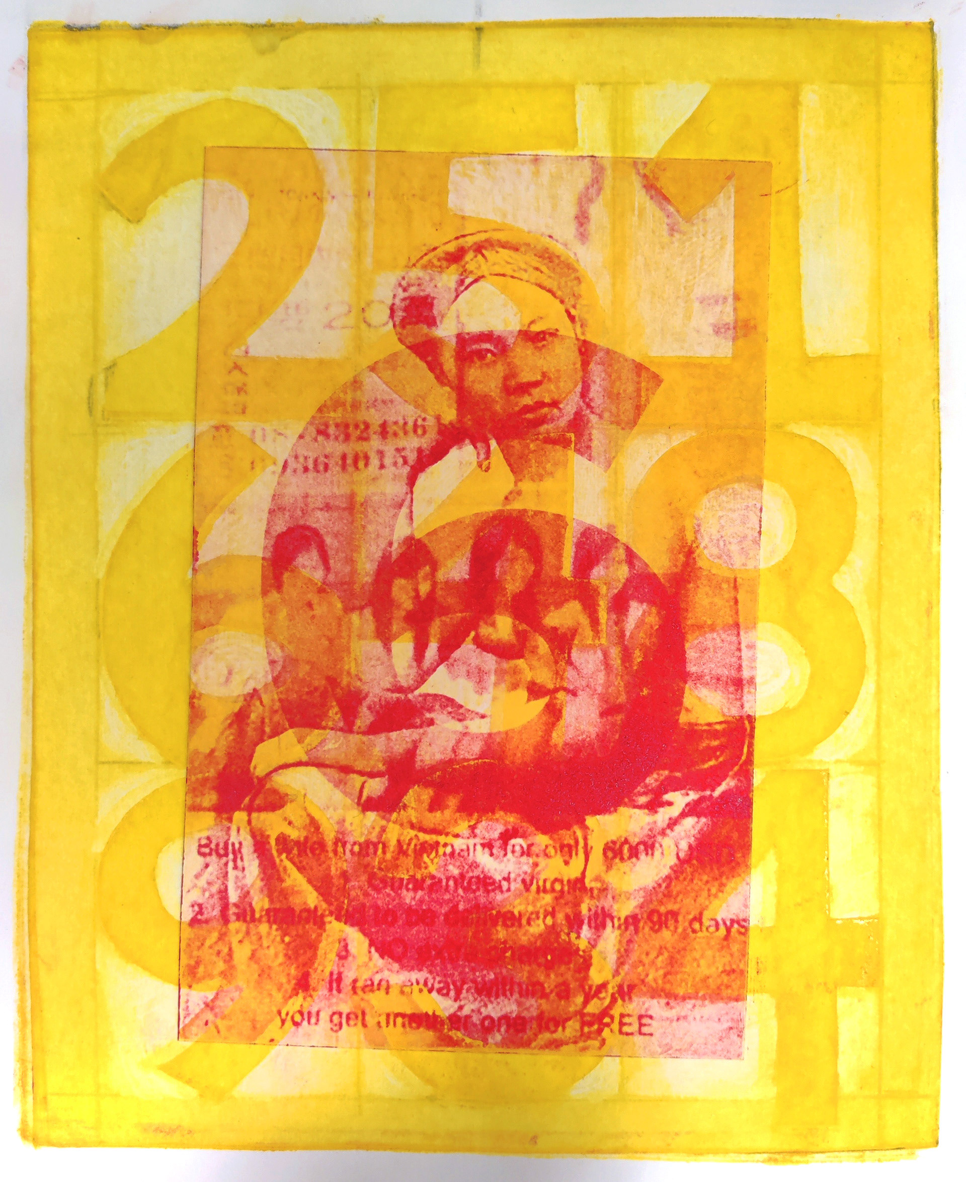 Collagraph utilizing Cardboard Relief and Inkjet Transfer on Bristol Paper